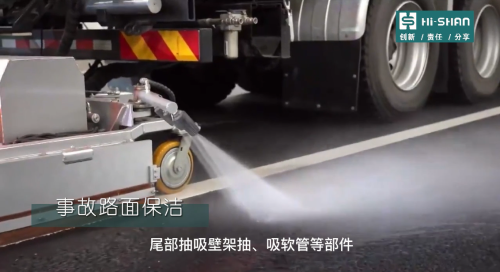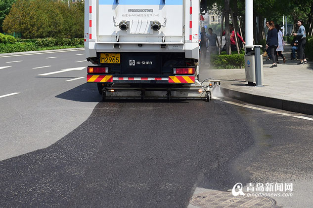 2018年山東省首輛道路污染清除車在李滄區(qū)上崗,開始對車輛往來多、道路污染較嚴重的環(huán)灣路進行清掃作業(yè)。