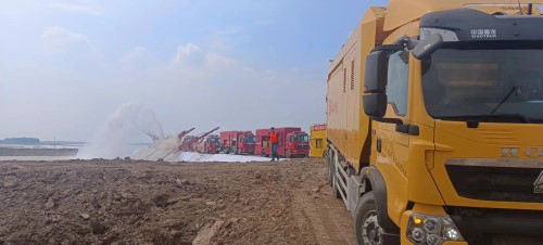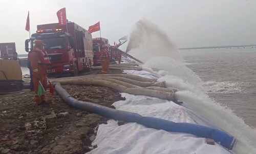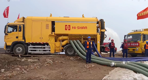 2022年5月多功能挖掘抽吸車(chē)參與荊州應(yīng)急排澇演練。